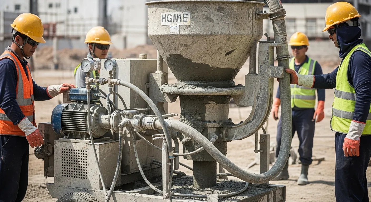 High-shear colloidal mixers ensure homogeneous cementitious grout preparation meeting PTI M55.1 minimum 35 MPa compressive strength requirements. Positive-displacement pumps deliver consistent 0.5-0.7 MPa injection pressure with pressure gauges and vent monitoring confirming complete duct filling.
